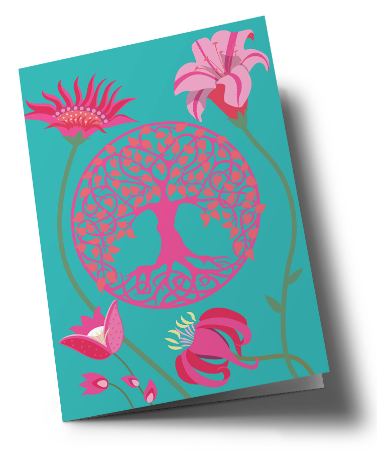 Klappkarte C6, gedruckt auf hochwertigem ungestrichenem 300g Papier mit Pantone Neon-Sonderfarben, FSC-zertifiziert.