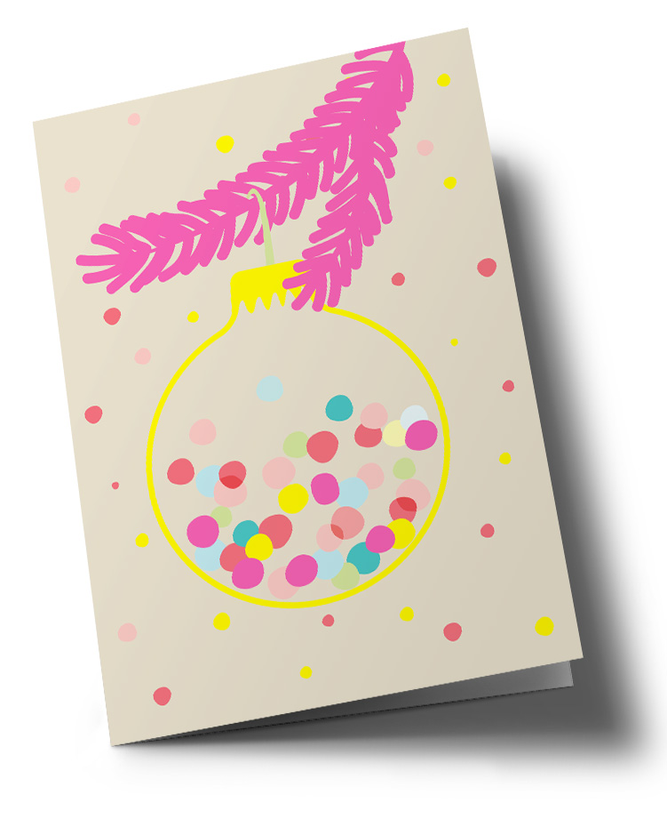 Klappkarte C6, gedruckt auf hochwertigem ungestrichenem 300g Papier mit Pantone Neon-Sonderfarben, FSC-zertifiziert.