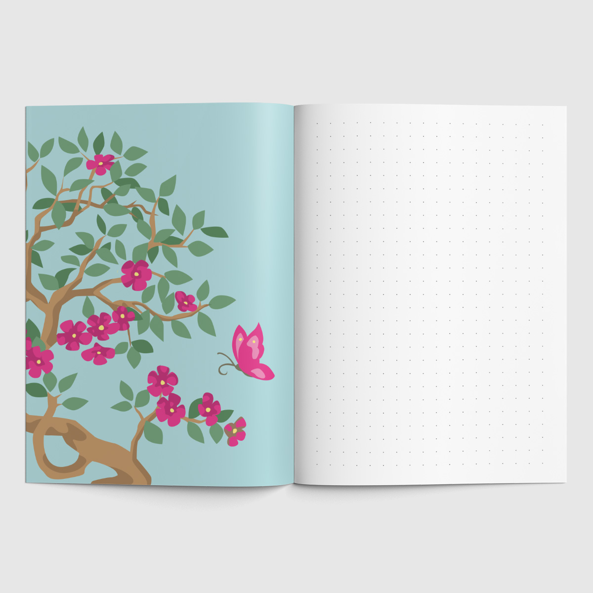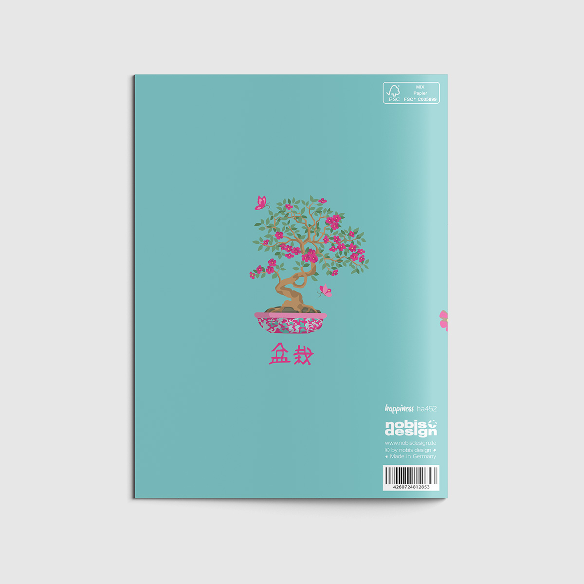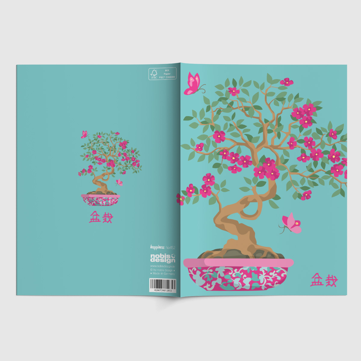 Notizheft DIN A5, 64 beschreibbare Seiten, 80g Papier - blanko, Umschlag 190g, Naturpapier, gedruckt mit Pantone Neon-Sonderfarben. FSC-zertifiziert.