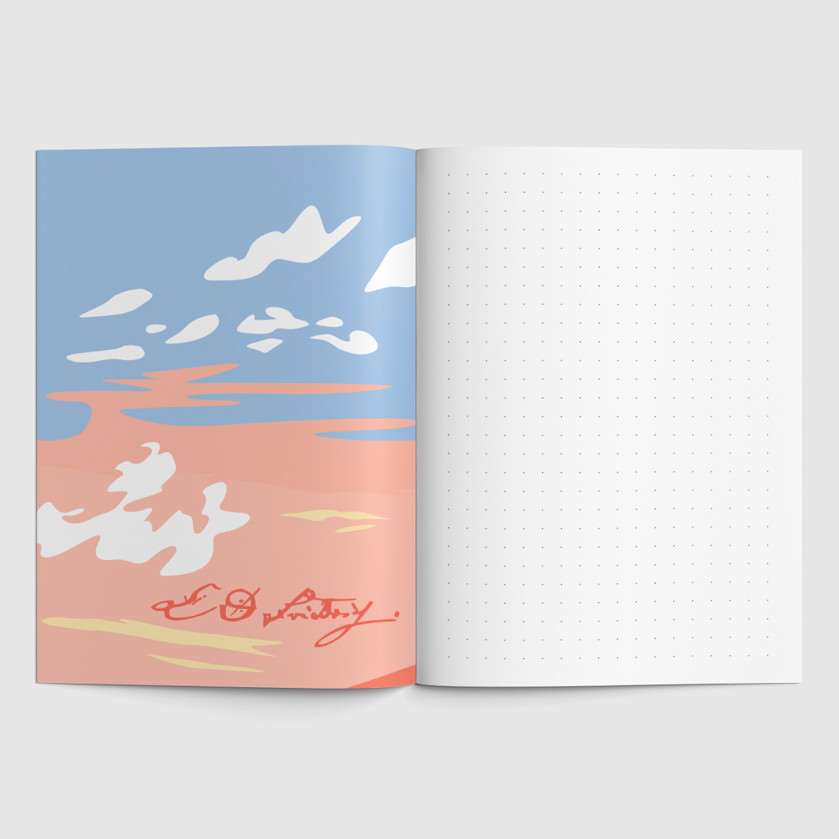 Notizheft DIN A5, 64 beschreibbare Seiten, 80g Papier - blanko, Umschlag 190g Naturpapier, gedruckt mit Pantone Neon-Sonderfarben. FSC-zertifiziert.
