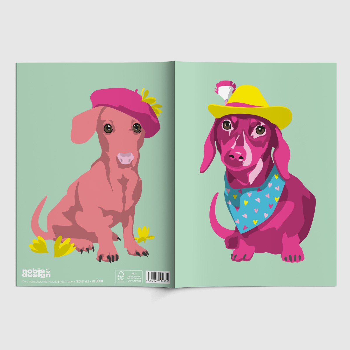 Notizheft A5 - neonstyle - Dackel mit Hut