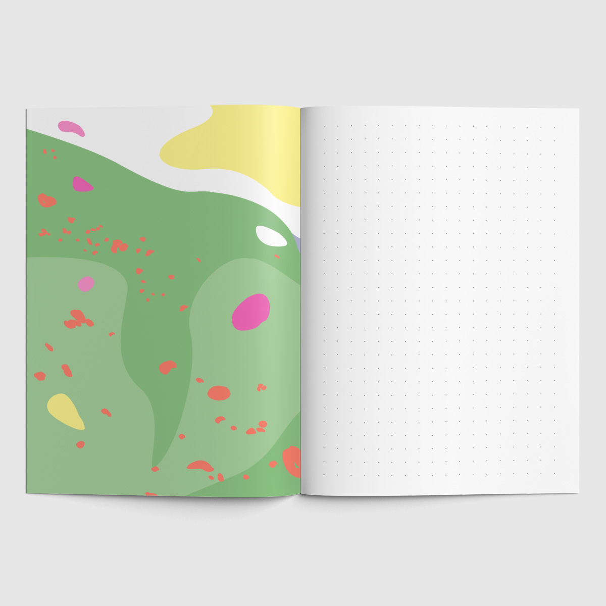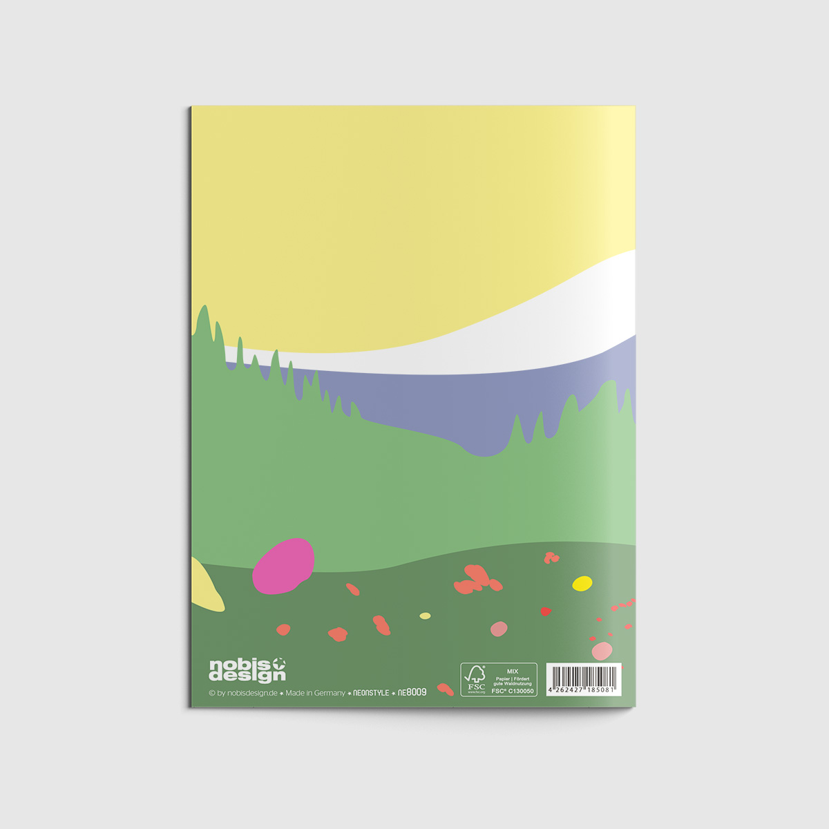 Notizheft DIN A6, 64 beschreibbare Seiten, 80g Papier - blanko, Umschlag 190g Naturpapier, gedruckt mit Pantone Neon-Sonderfarben. FSC-zertifiziert.