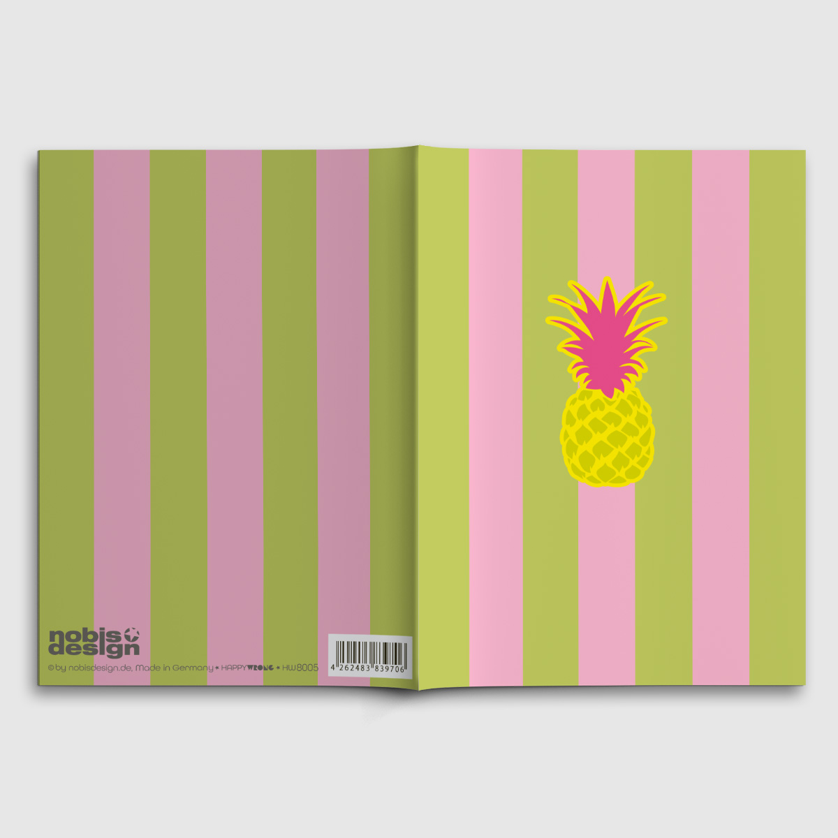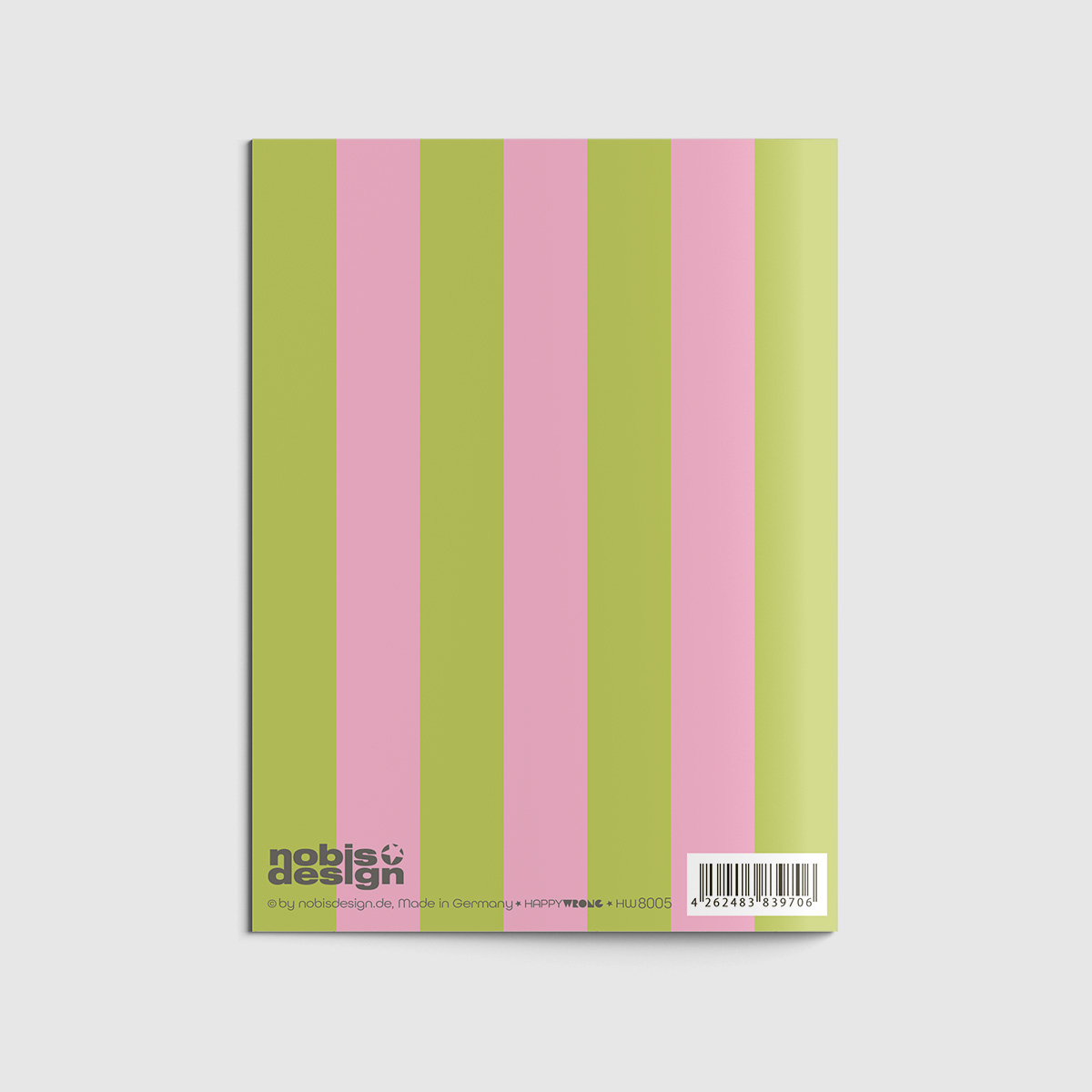 Notizheft DIN A6, 64 beschreibbare Seiten, 80g Papier - blanko, Umschlag 190g Naturpapier, gedruckt mit Pantone Neon-Sonderfarben. FSC-zertifiziert.