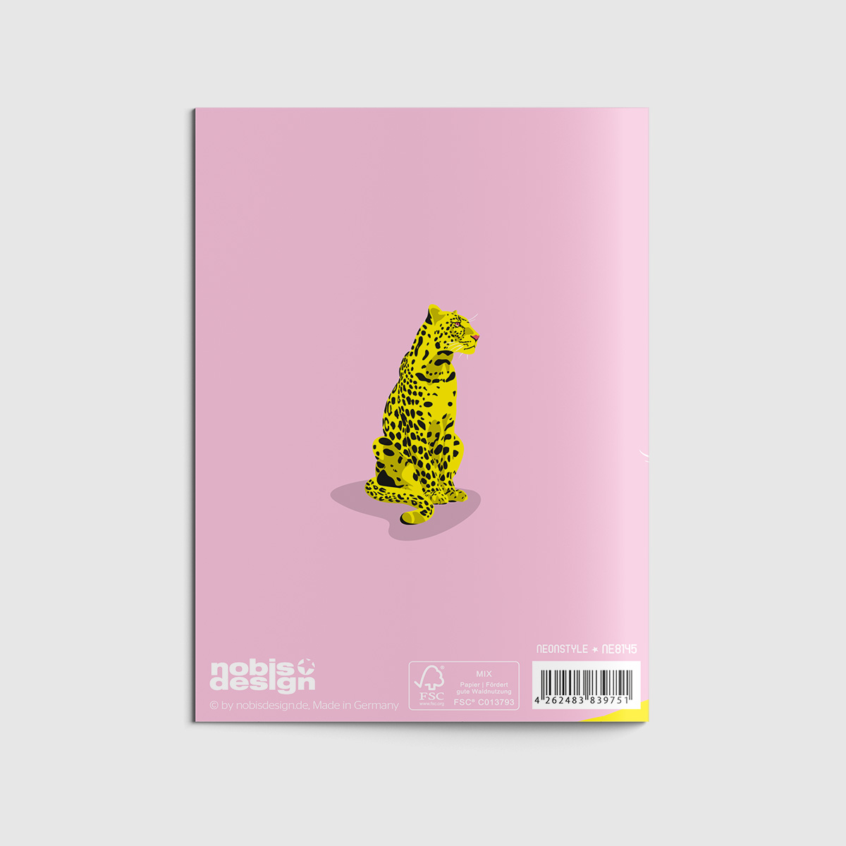 Notizheft DIN A6, 64 beschreibbare Seiten, 80g Papier - blanko, Umschlag 190g Naturpapier, gedruckt mit Pantone Neon-Sonderfarben. FSC-zertifiziert.