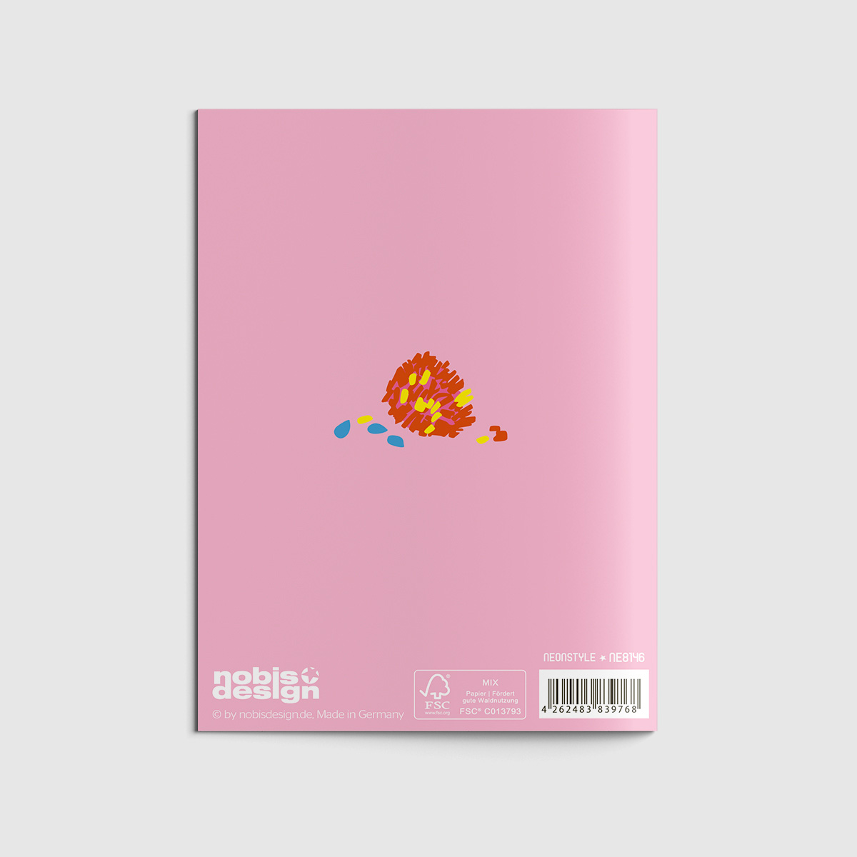 Notizheft DIN A6, 64 beschreibbare Seiten, 80g Papier - blanko, Umschlag 190g Naturpapier, gedruckt mit Pantone Neon-Sonderfarben. FSC-zertifiziert.