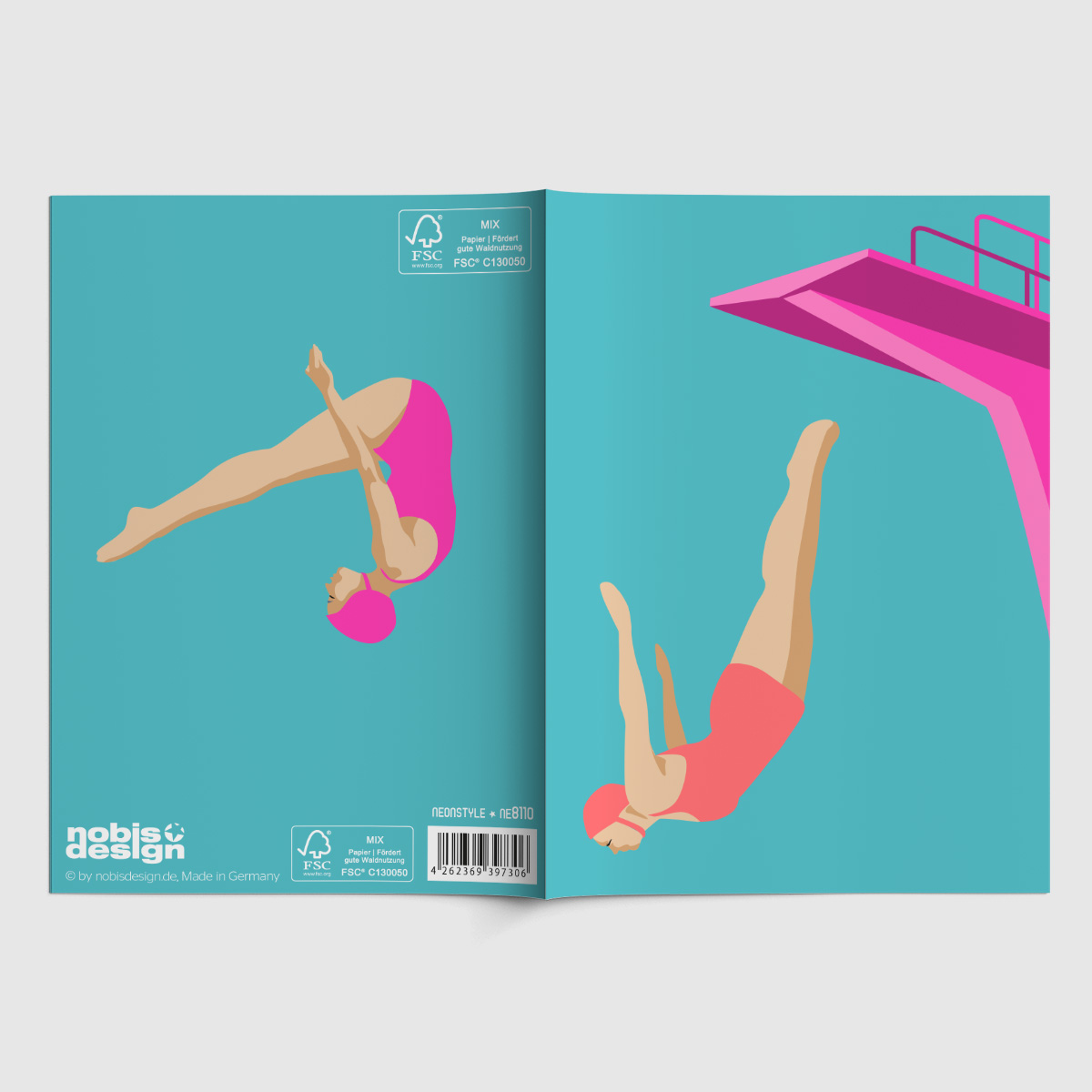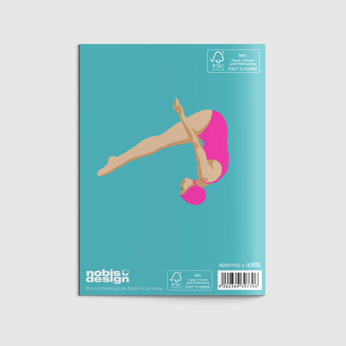 Notizheft DIN A6, 64 beschreibbare Seiten, 80g Papier - blanko, Einband 300g Naturpapier, gedruckt mit Pantone Neon-Sonderfarben. FSC-zertifiziert.