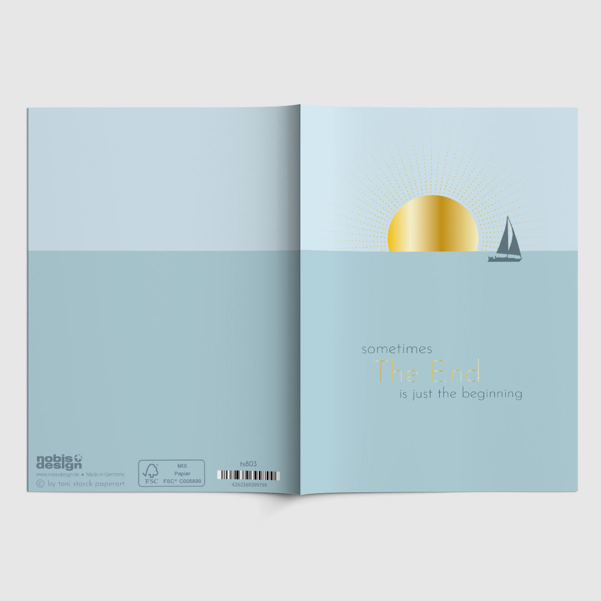 Notizheft DIN A6, 32 Seiten, 80g Papier - blanko, Einband 300g Naturpapier mit partieller Goldfolienprägung. FSC-zertifiziert.