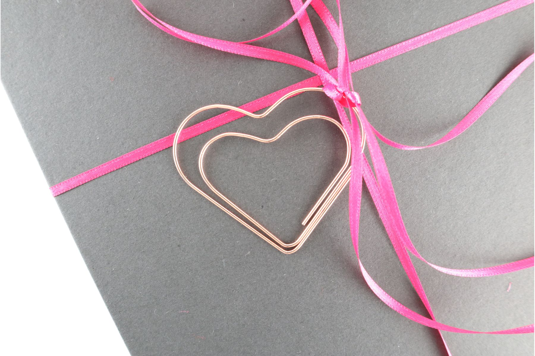 Mit unseren roségoldenen paperclips bringen Sie nicht nur Ordnung in Ihre Unterlagen, sondern sie sind auch bestens als Lesezeichen geeignet oder verpacken Sie stilvoll Geschenke für Freunde und Familie. Menge: 3 Stück roségoldene paperclips, Material: Hochwertiges Metall mit Roségold-Beschichtung
