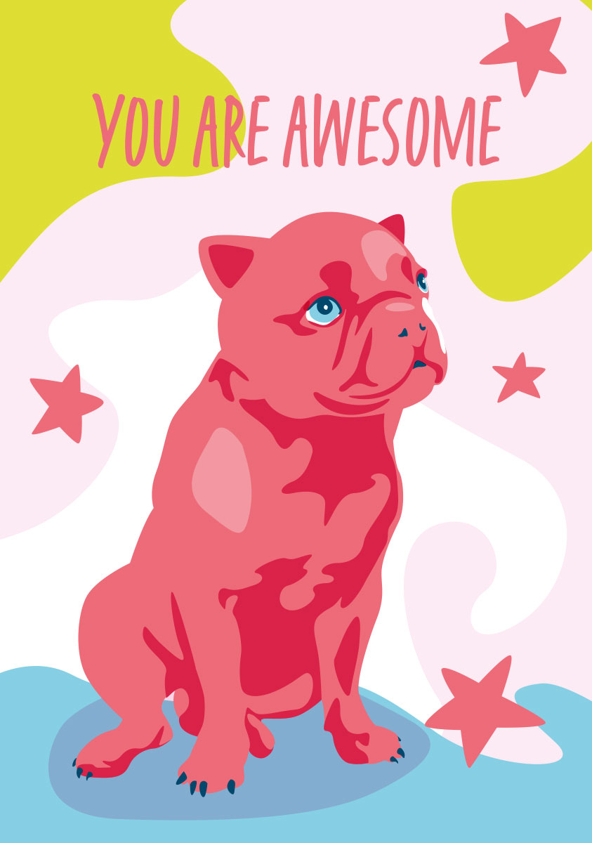 Postkarte A6, gedruckt auf hochwertigem ungestrichenem 350g Papier mit Pantone Neon-Sonderfarben. FSC-zertifiziert.