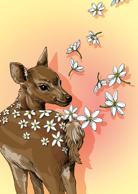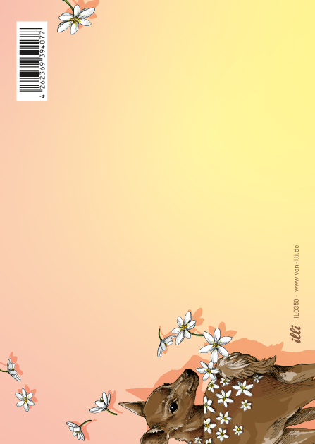 Holzschliffpappe. Rückseite mit liebevollen Illustrationen gestaltet.