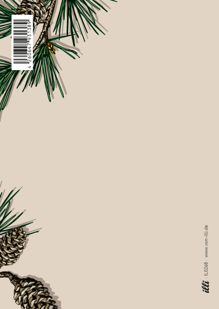 Holzschliffpappe. Rückseite mit liebevollen Illustrationen gestaltet.