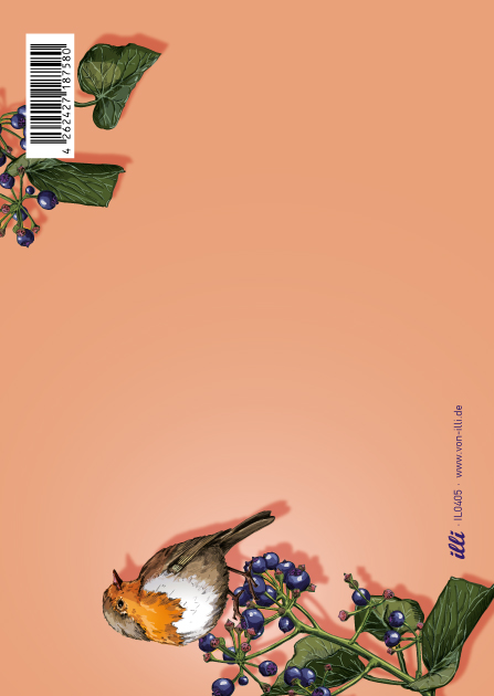 Holzschliffpappe. Rückseite mit liebevollen Illustrationen gestaltet.