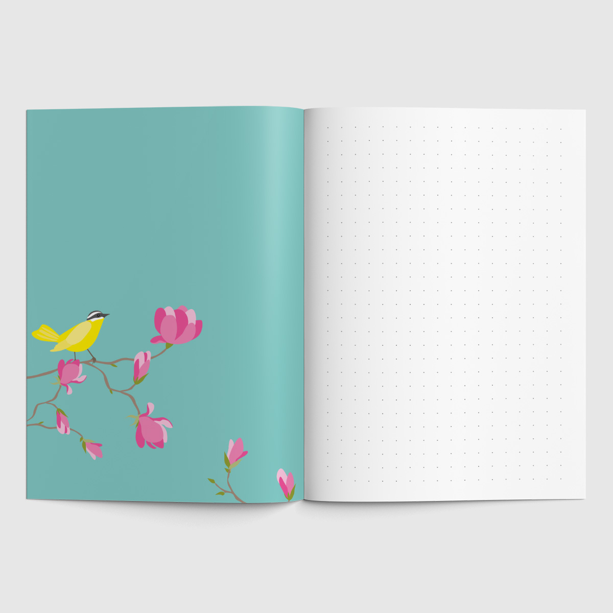 Notebook A5, 32 pages, 80g paper - dotted, cover 300 g natural paper, printed with neon special colors.