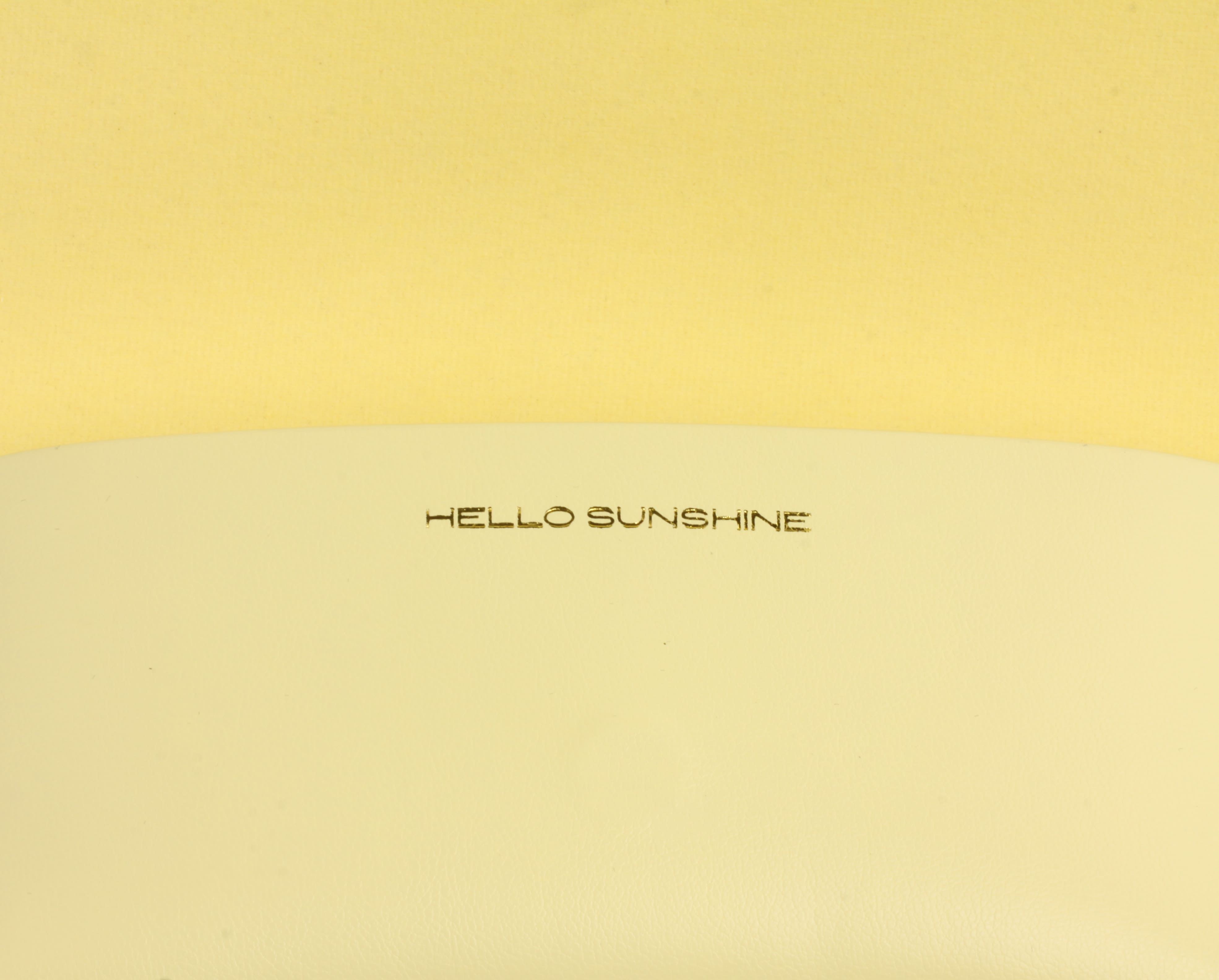 Ein besonderes Highlight ist die fröhliche Innengravur „HELLO SUNSHINE“ – ein kleiner Stimmungsaufheller bei jedem Öffnen. Jedes Etui kommt mit einem farblich passenden Brillenputztuch für den perfekten Durchblick.